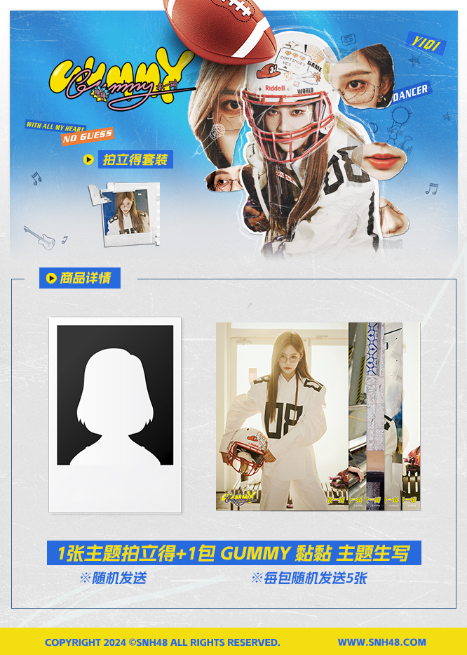 本套装内含:1包 袁一琦《Gummy(黏黏)》主题生写 + 1张 主题拍立得随机;